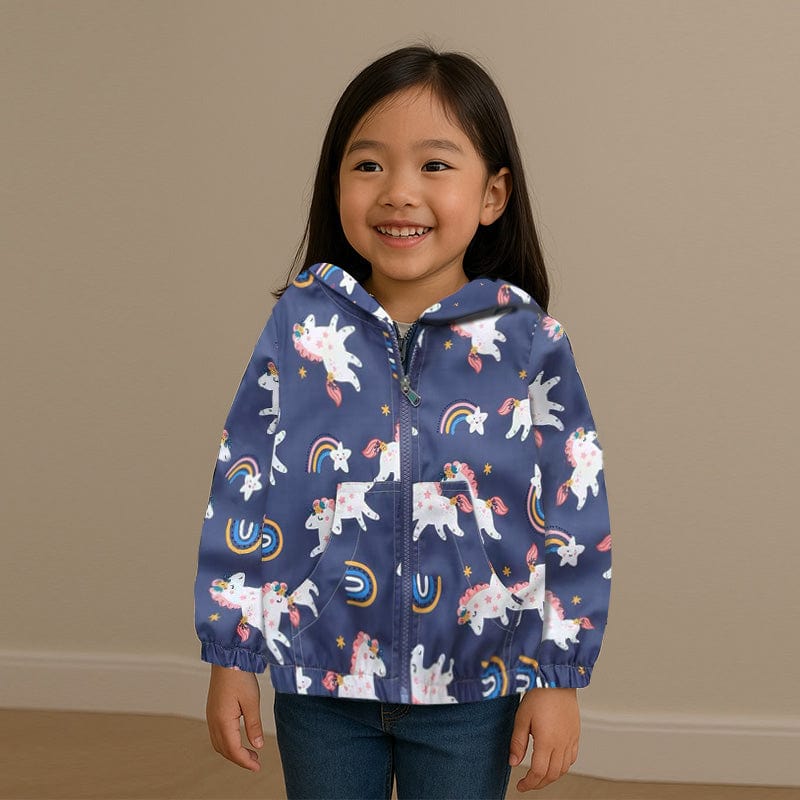 Cool and lightweight, this Unicorns & Rainbows Jacket comes with a hood and a front zip. It is also both windproof and water-resistant. A layer of cotton fabric is added in for that extra comfort and side packets for that little knick knacks.
