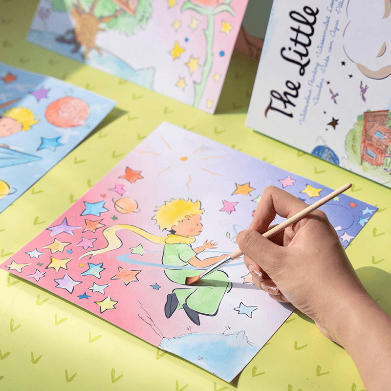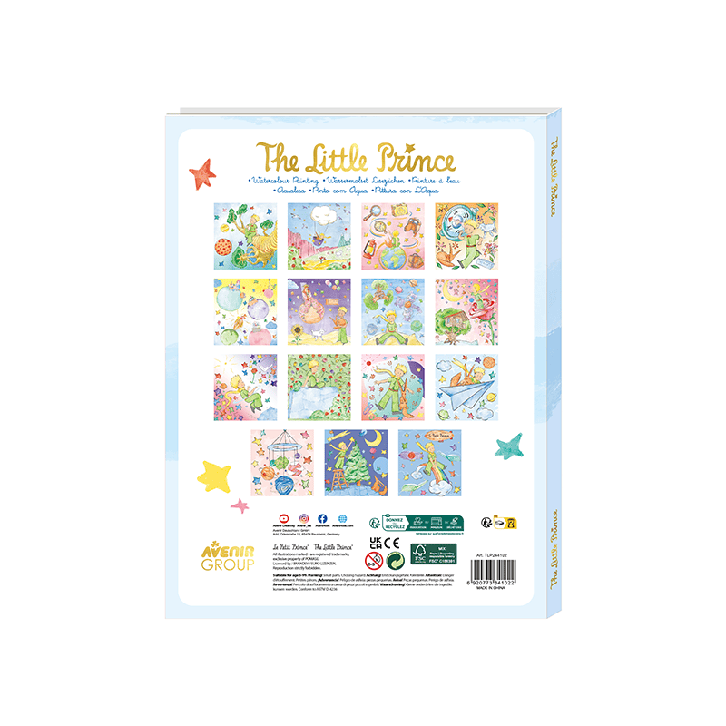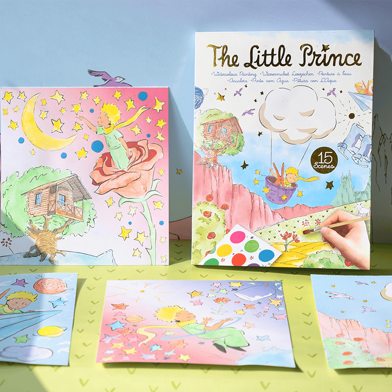 The Little Prince Watercolour Painting is a creative art book for children aged 3 and up, featuring 15 enchanting scenes from The Little Prince ready to be brought to life with water and color. Using the included brush and paint palette, kids can easily fill in each illustration and enjoy a relaxing painting experience. The book style format keeps everything neat and contained, perfect for home or on the go. It encourages artistic expression, color recognition, hand control, and patience all in one calming and imaginative set.