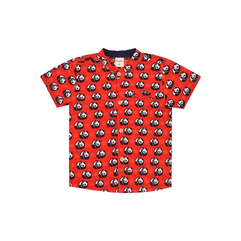 CNY Boy Shirt - Mandarin Collar - Prosperity Panda (Red)