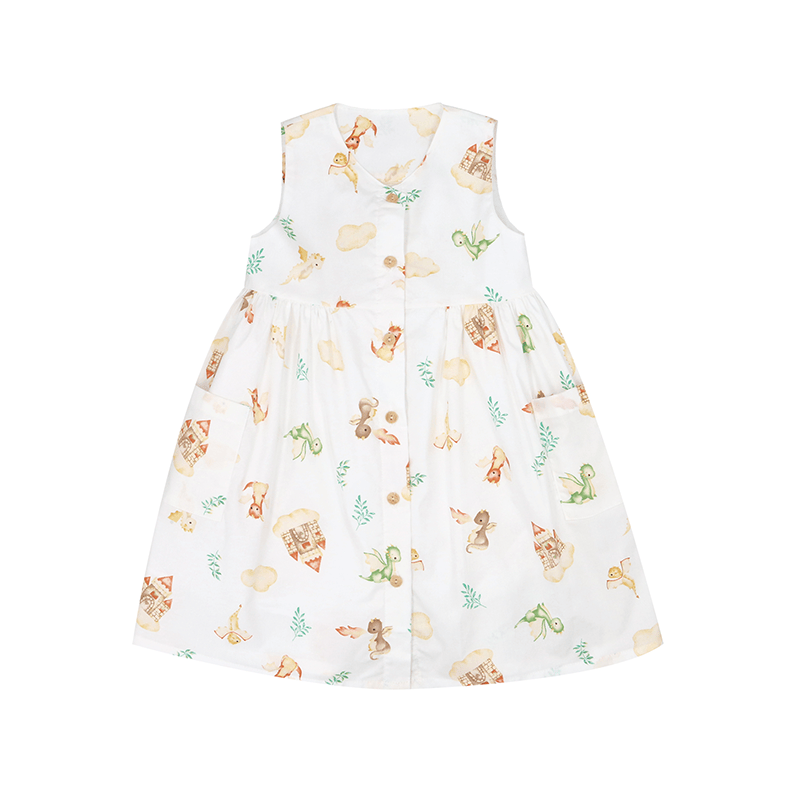 Your little one will have a fun day with this fun and prettyButton Down Baby Dragon & Castle Sleeveless Dress. Made with 100% cotton, it is extremely comfortable and suitable for our sunny island. It also comes with 2 side pockets for your princess's little knick knacks. .