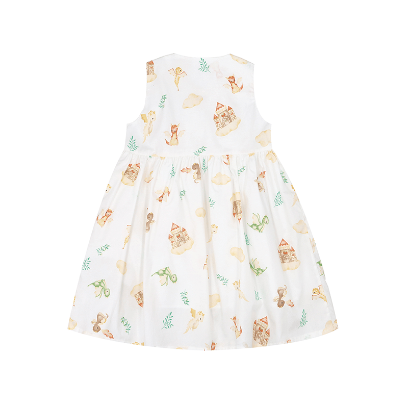 Girl Dress Button Down Baby Dragon & Castle - (White)