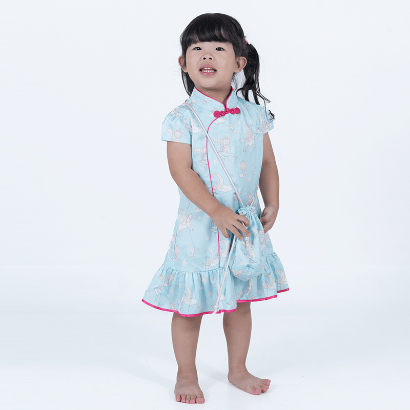 A delightful girl’s cheongsam made from premium jacquard fabric, featuring a charming animals in wonderland print. Playful animal motifs are woven with subtle texture and sheen, while classic detail like the mandarin collar adds a traditional touch. Comfortable, elegant, and full of imagination—perfect for festive occasions and special celebrations. Comes with a matching bag for collect red pockets!
