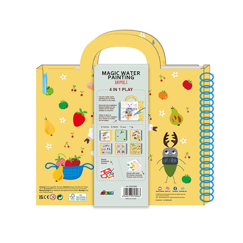 The Magic Water Painting - Forest Animals Book comes with 8 magic water painting pages, a refillable water pen, a reusable stencil and 3 water stamps. There are also some fun games too! Multiple fun activities contained in one book!